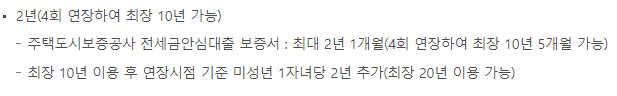 - 청년가구(만25세 미만 전용면적 60m2이하,보증금 7천만원이하,대출금 5천만원이하 단독세대주) 연 0.3%