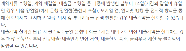 만일 비대면으로 신청하여 중도상환수수료를 면제 받으면 여유자금이 있을 때마다 대출을 갚아두어 이자 비용을 줄일 수 있다는 장점이 있기 때문에 비대면 신청을 추천합니다.