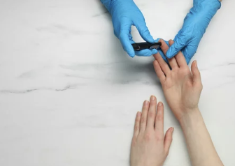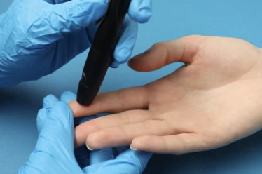 - 채혈: 손가락 끝 부분을 소독하고 채혈침으로 살짝 찔러 혈액을 채취해요.