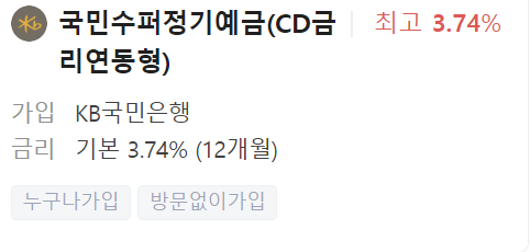 이 상품은 누구나 방문 없이 가입이 가능한 상품으로 국민은행의 대표 예금 상품입니다.