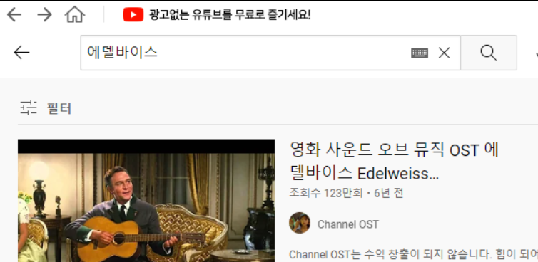 에델바이스 검색 후 유튜브 영상을 클릭!