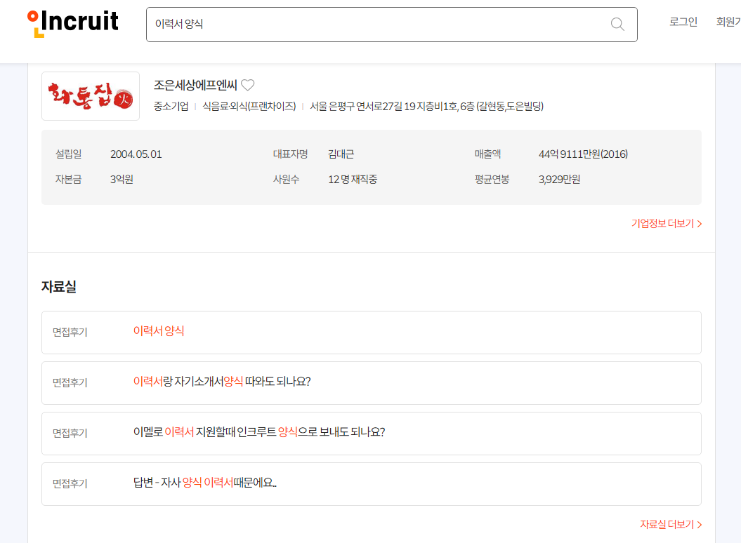 검색 후 맨 하단의 인크루트 자료실을 찾아주세요.