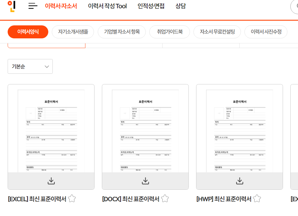 최신 표준 이력서를 파일 종류별로 무료 배포합니다.