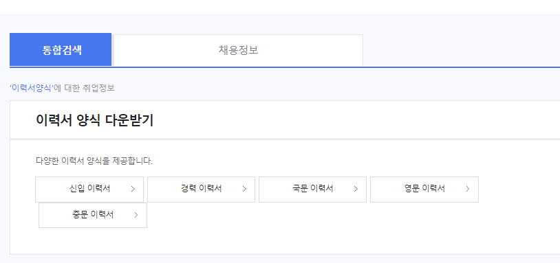 마찬가지로 검색창에 '이력서 양식'을 검색하세요